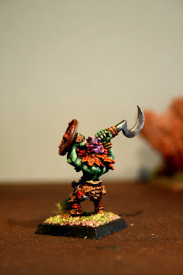 Hello! I'm putting together a small unit of Savage Orcs for KoW, to be used as Skulks Troop. I have a punch of old 1987 Savages around and this "beauty" for a unit leader figure.